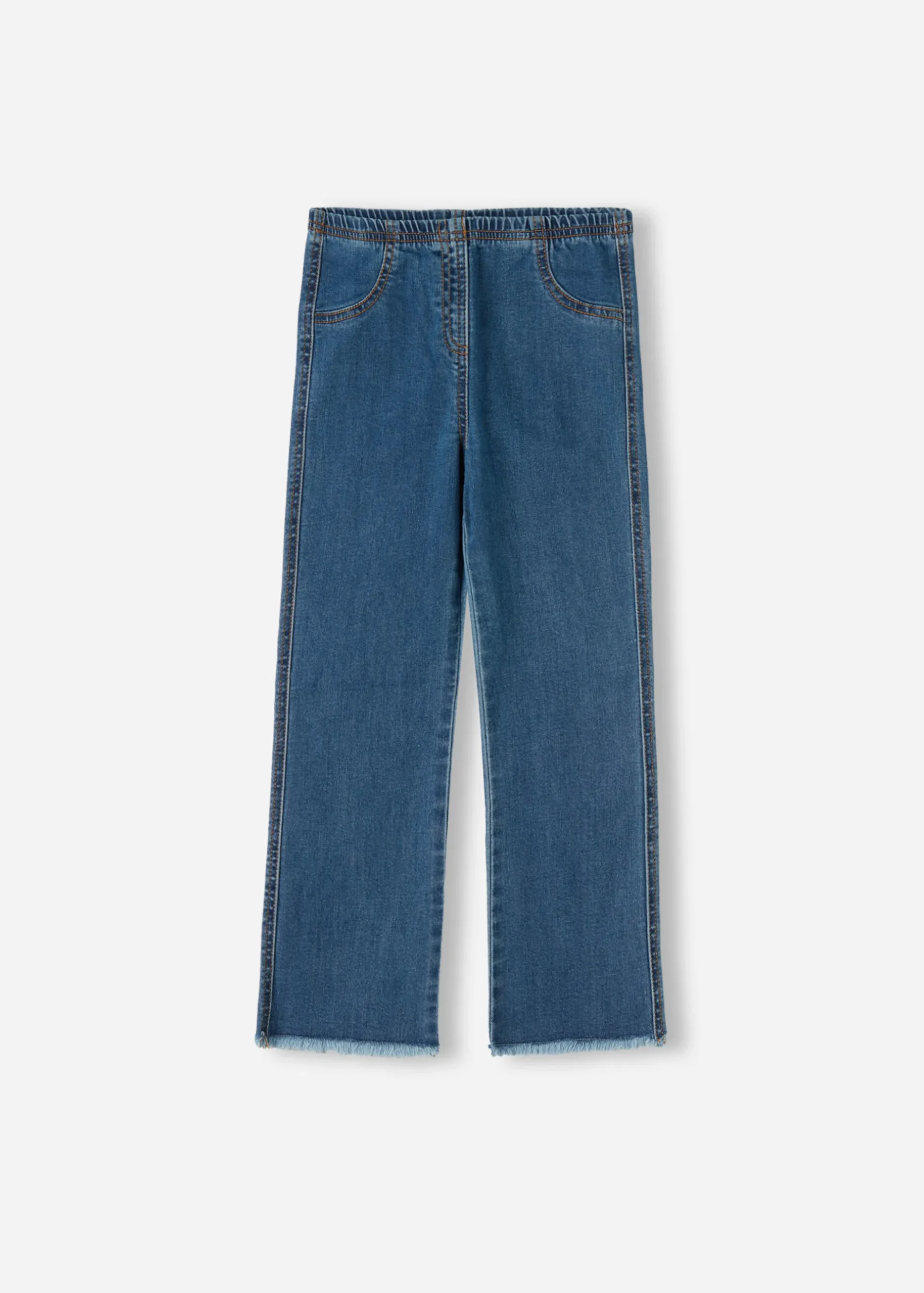 Girls’ Ankle Length Flared Denim Leggings. Comfortable Elasticated Waistband. Faux Front Pockets And Faux Flap, Real Back Pockets.