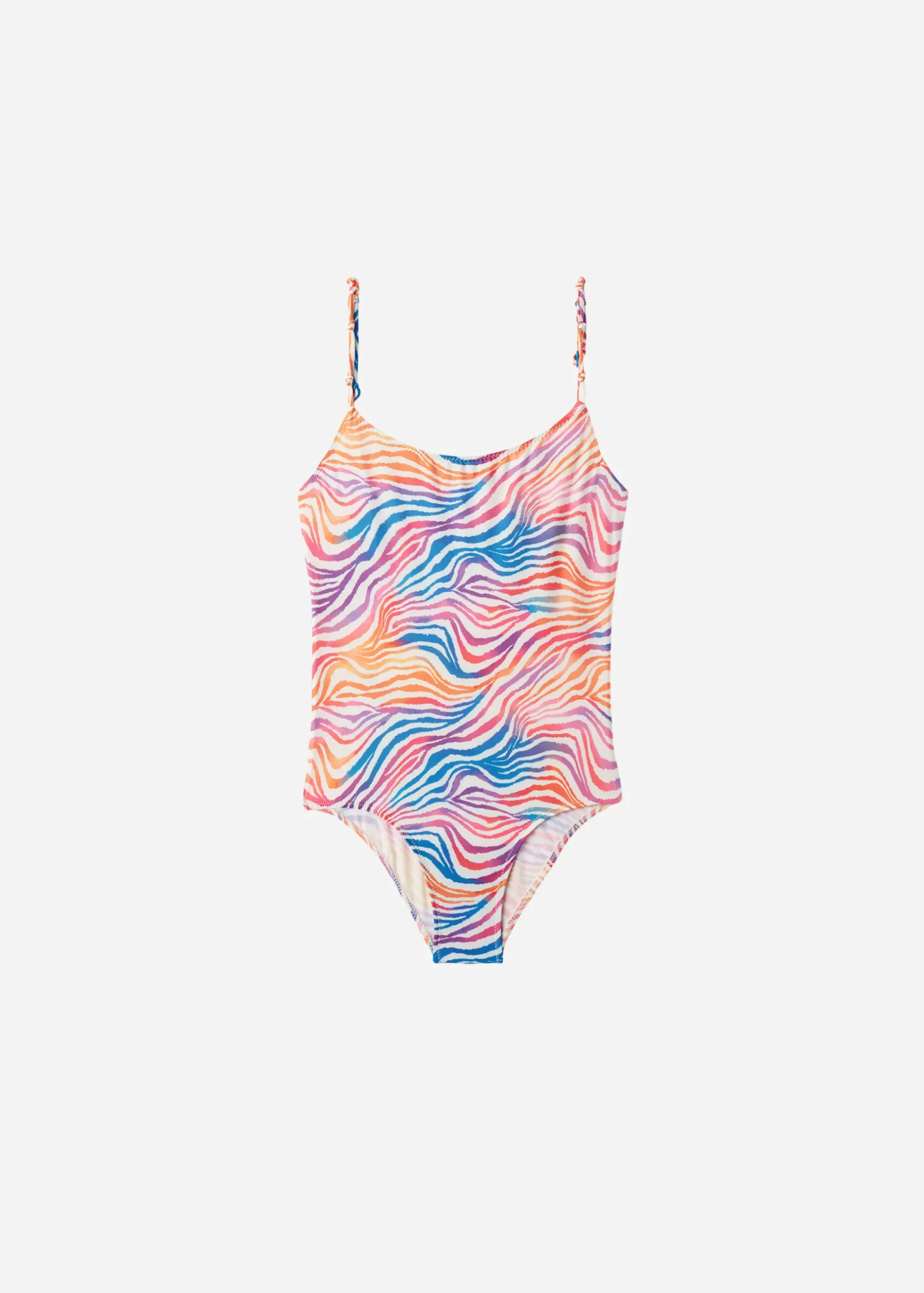 Girls’ Swimsuit In Soft Microfibre Fabric With Multi-Coloured Animal Pattern. Adjustable Spaghetti Straps. Lined Gusset In Small Sizes And Sizes 12-14 Are Lined At The Front. Created For The Mother & Daughter Capsule Collection For A Matching Outfit (Malaga Series).