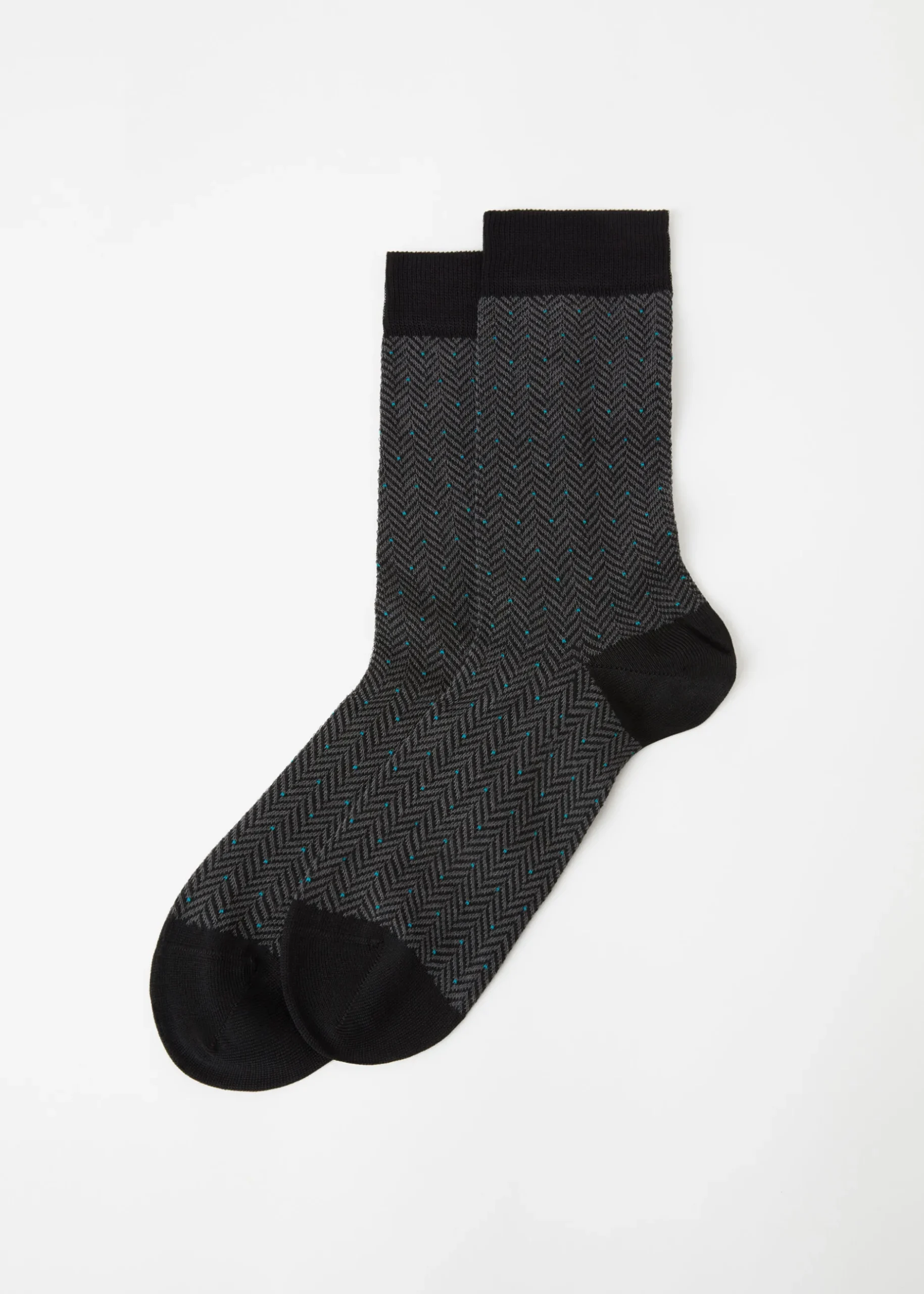 Men’s Crew Socks In Soft Cotton, Featuring A Herringbone Geometric Pattern And A Micro Dot In Contrasting Colour.