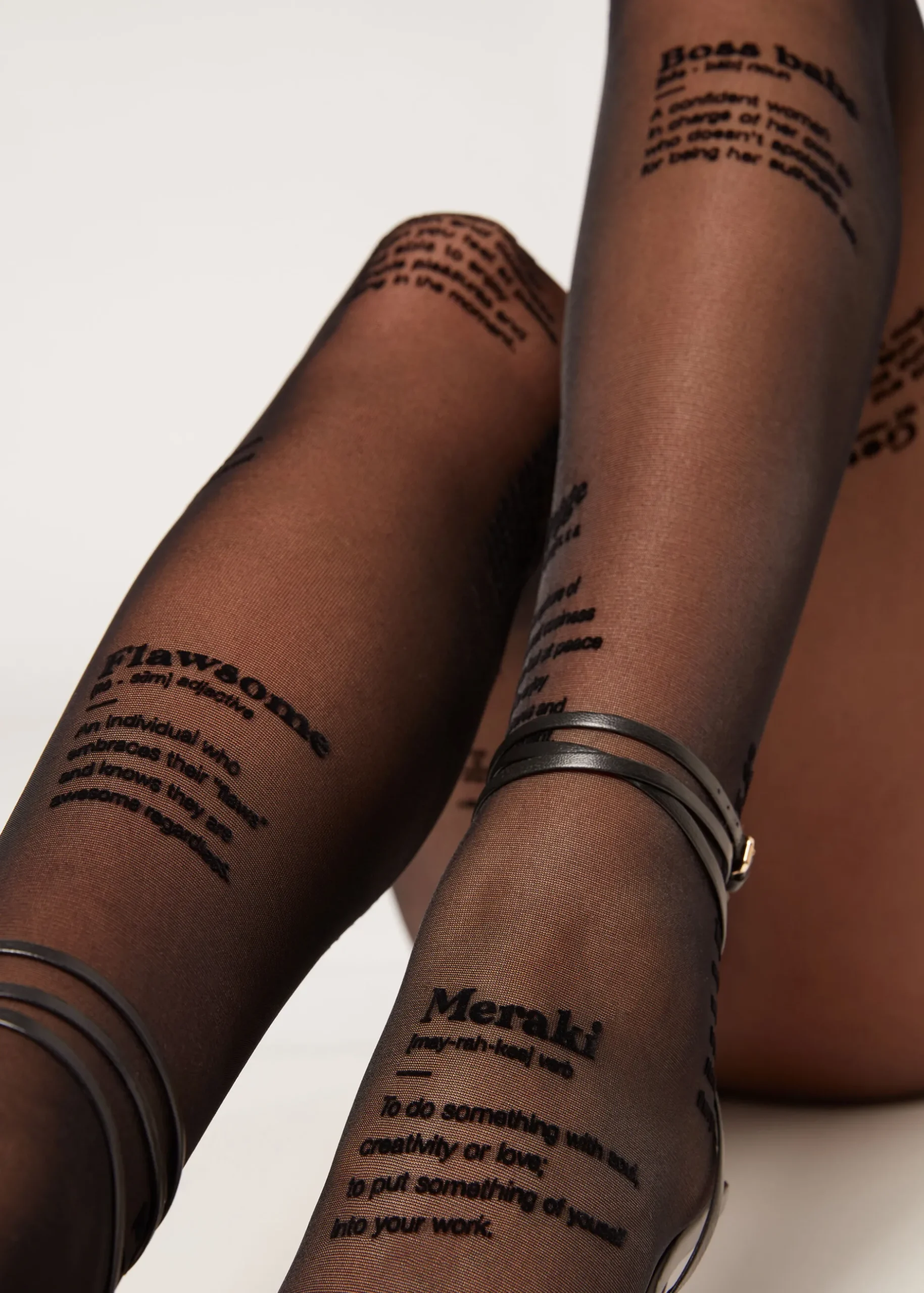 Women Calzedonia 30 Denier Sheer Tights With Flocked “Girl Power” Wording