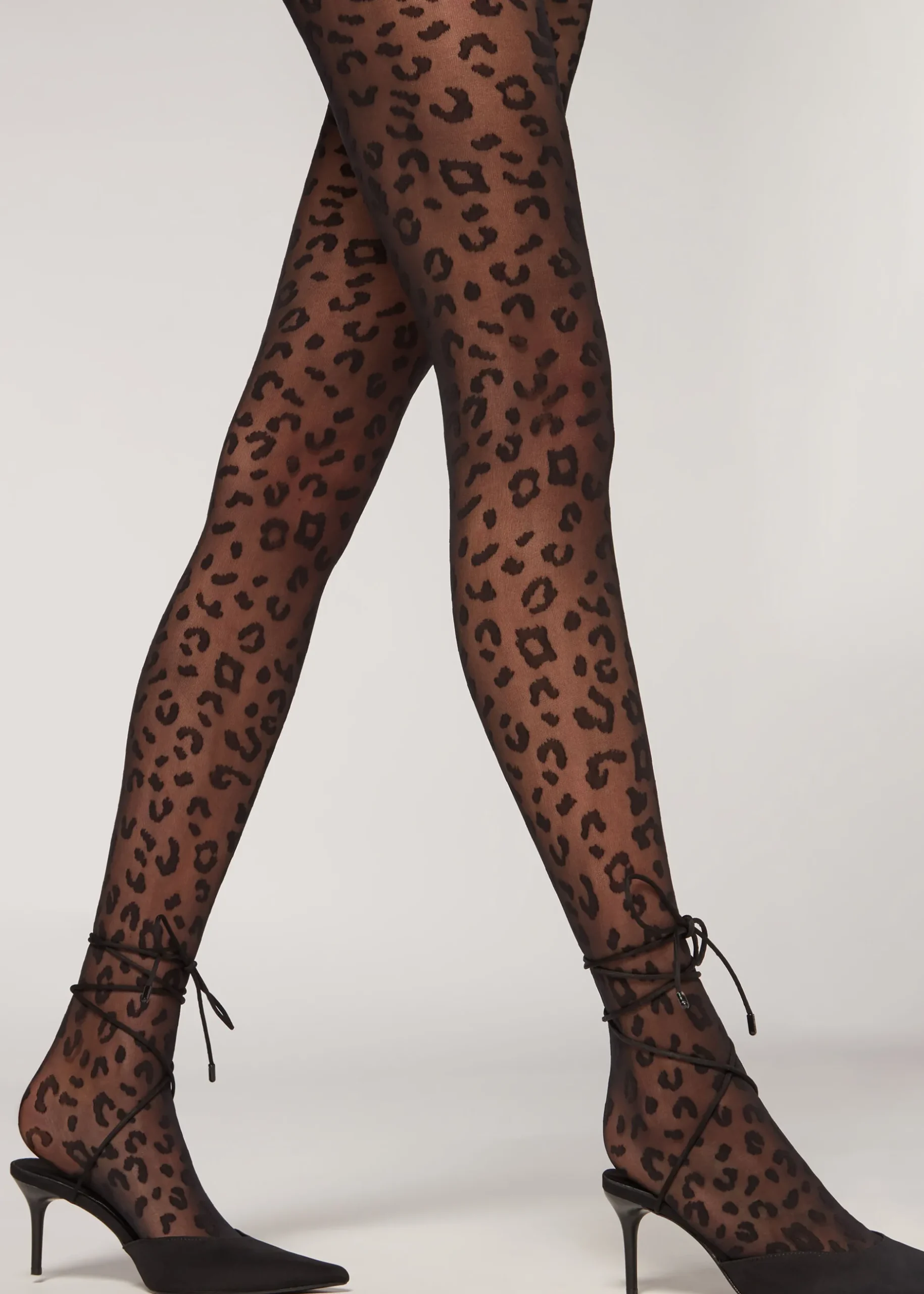 Women Calzedonia Animal Pattern 30 Denier Sheer Tights