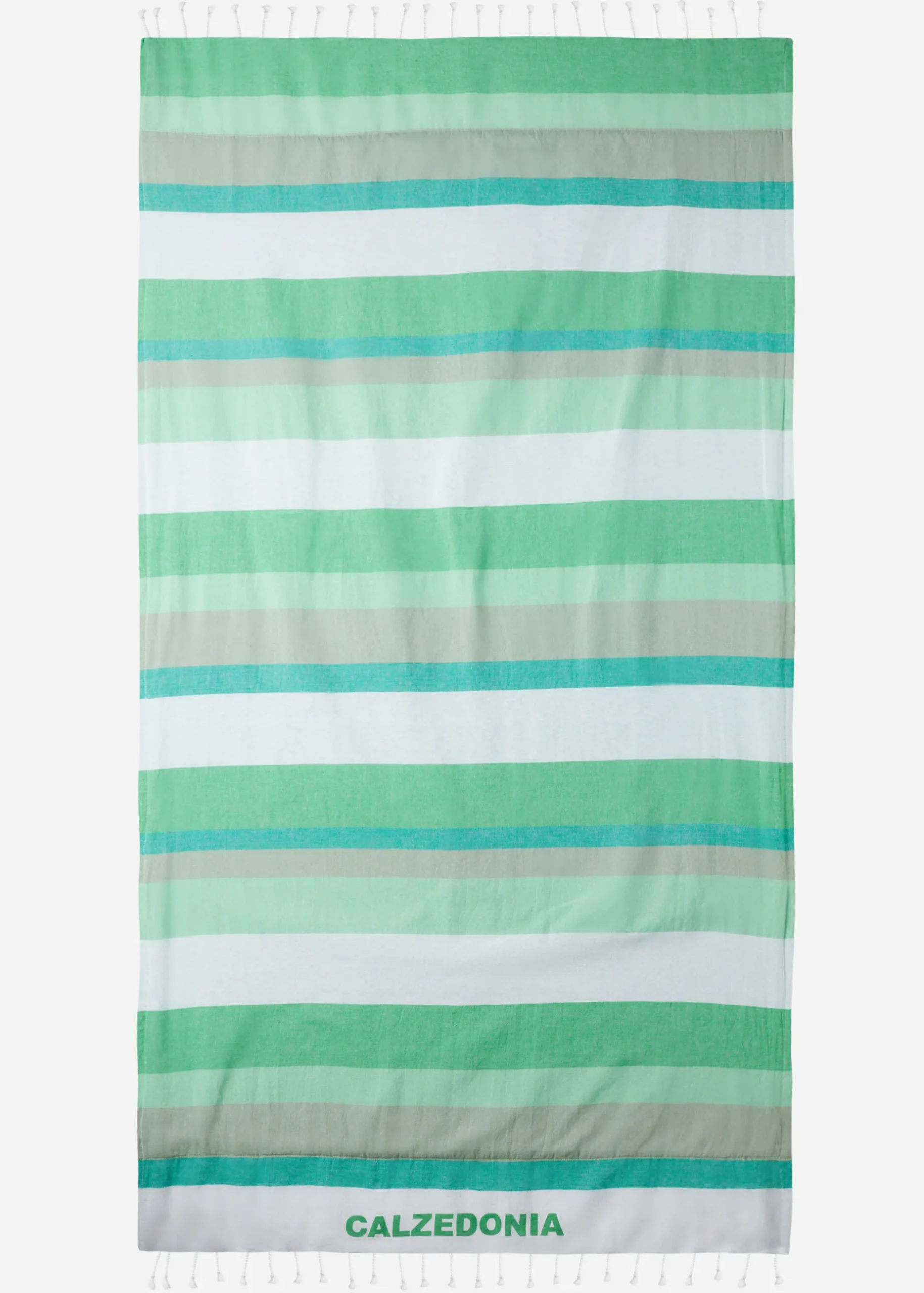 Soft 100% Cotton Beach Towel With “Calzedonia” Logo And Striped Effect In Elegant Jacquard Weave. Slight Fringing On The Hem. The Towel Is 90Cm Wide And 175Cm Long.