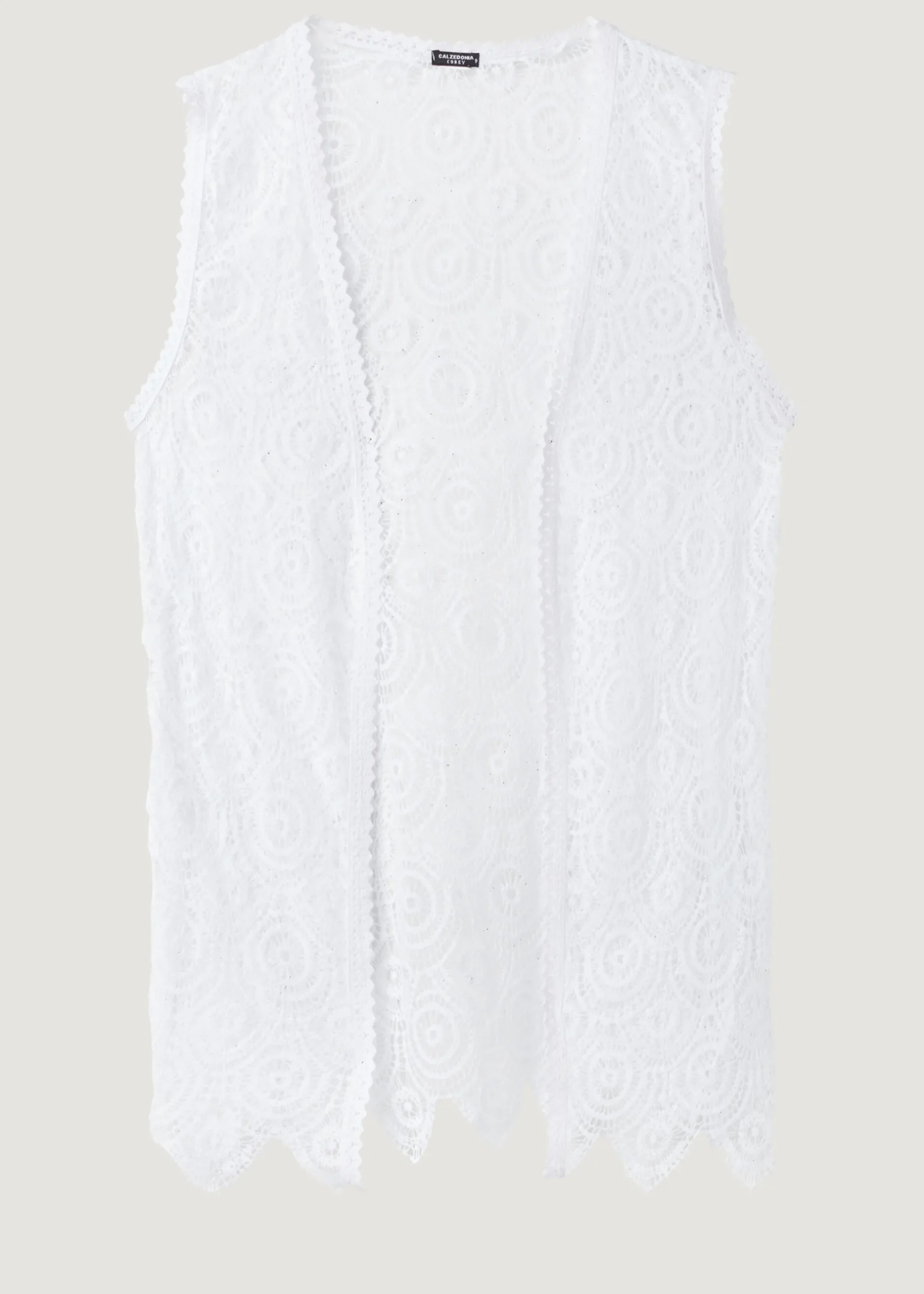 Cotton Gilet Featuring A Geometric Crochet Design. The Scalloped Hem Makes The Piece Particularly Luxurious.