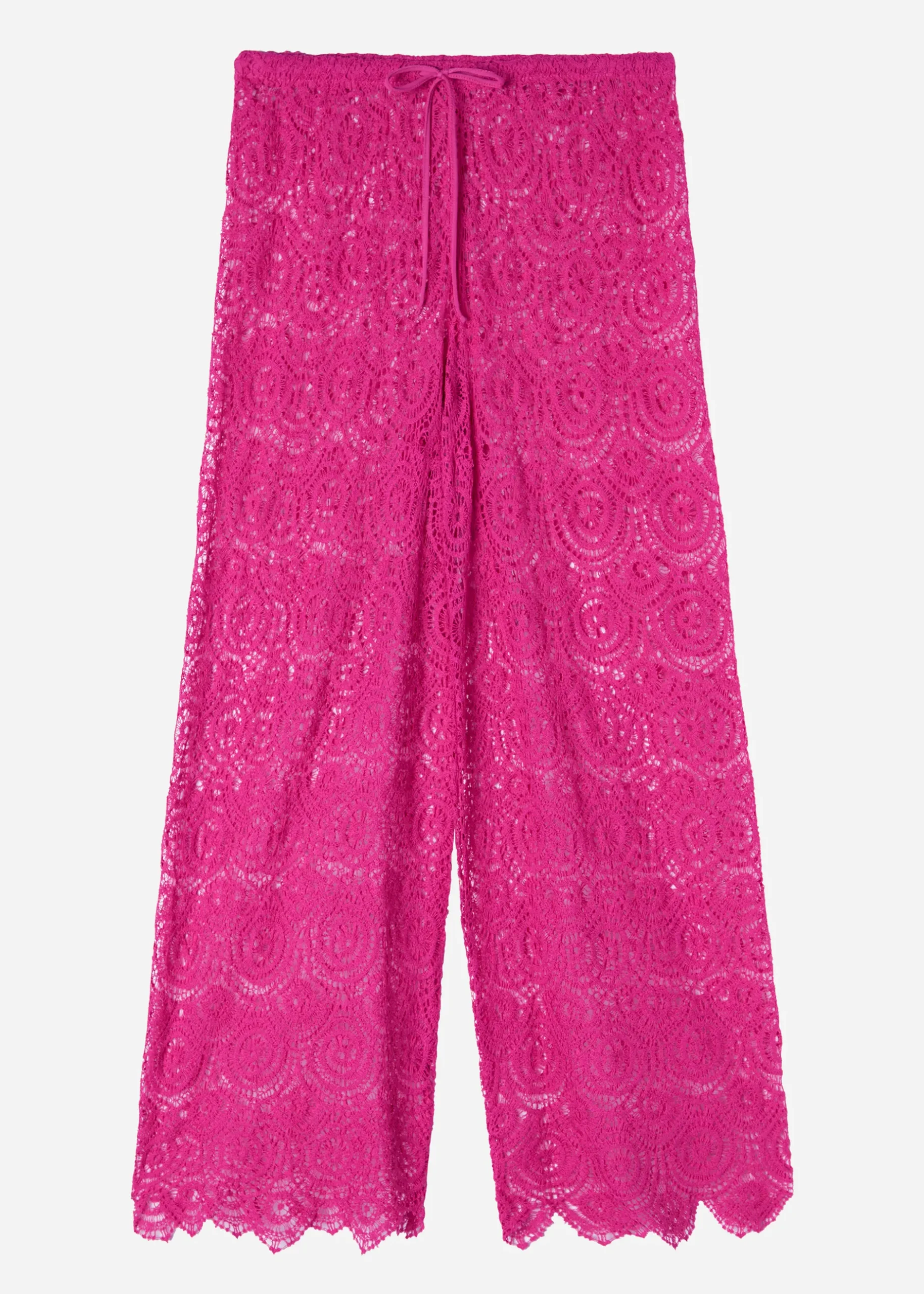Cotton Trousers Featuring A Geometric Crochet Design. Drawstring Waist To Adjust The Fit And Scalloped Detail At The Ankle. Fully Unlined.