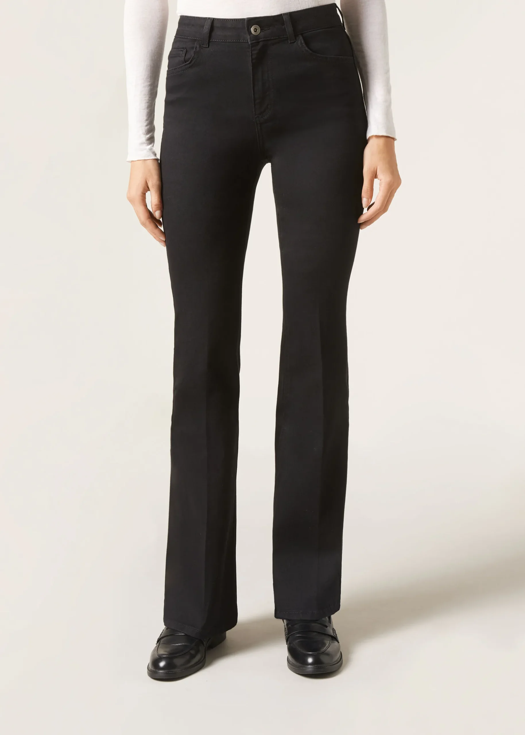 Women’s Jeans With Zip And Button Fastening And Front And Back Pockets. Cut With A Bell-Bottom Silhouette. Regular Fit.