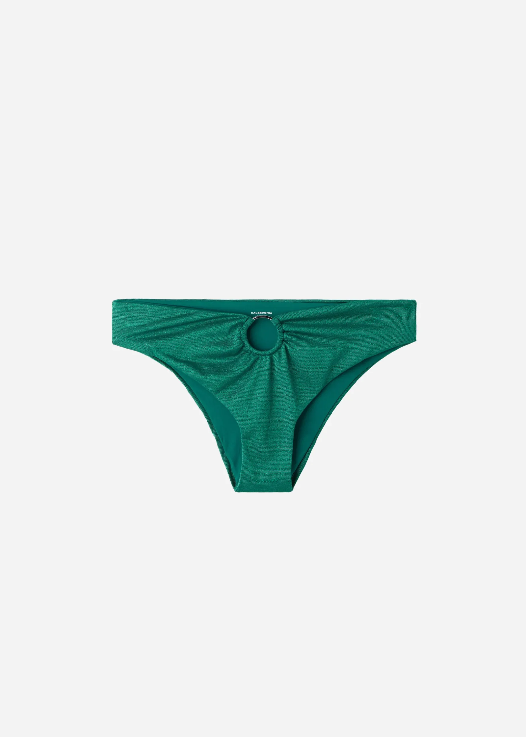 Soft Fabric High-Waisted Bikini Bottoms With Sparkly Lame Thread And Embellished With A Nickel-Free Gold Ring. Fully Lined With Invisible Seams To Maintain A Continuous Shape.