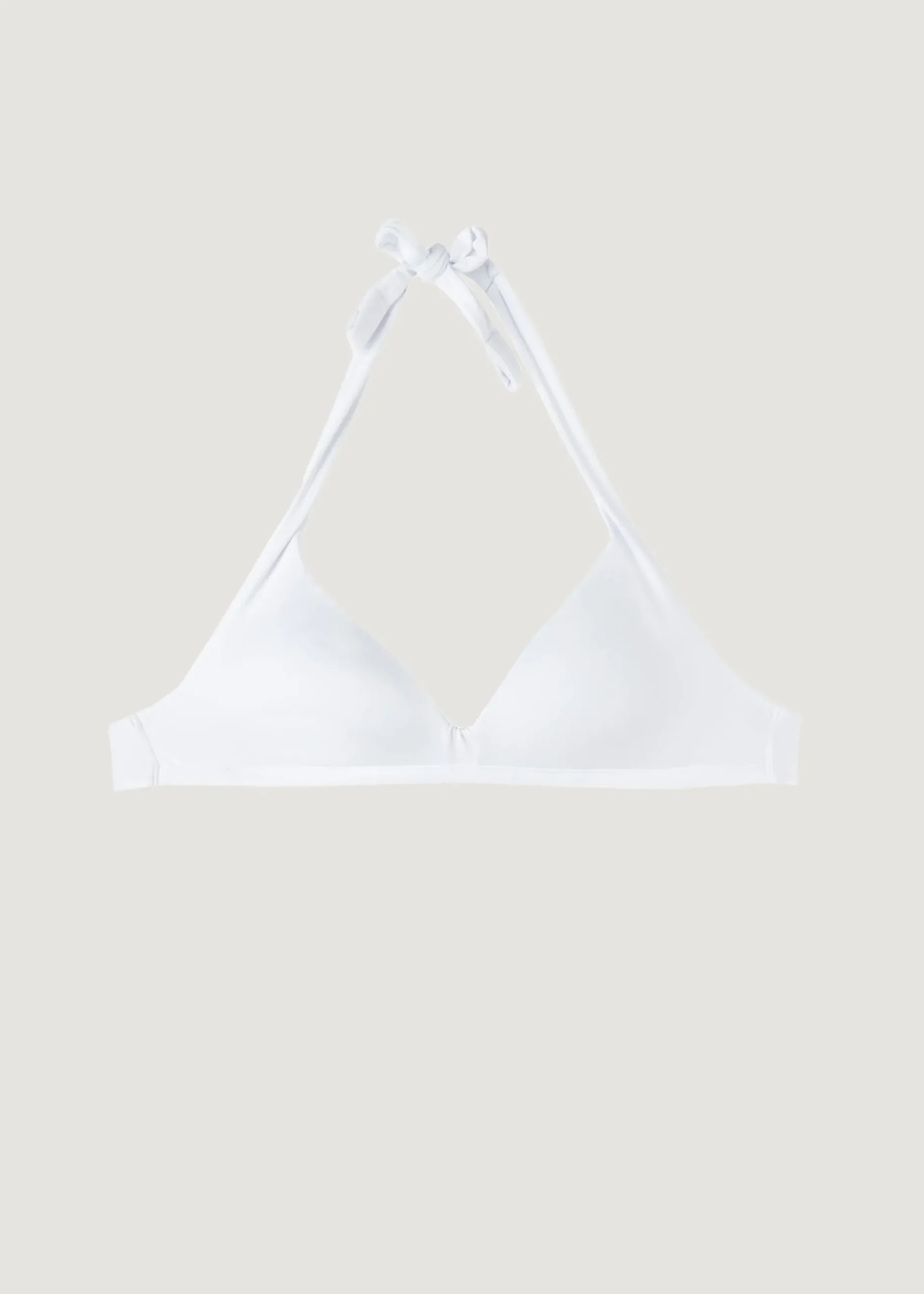 Non-Wired, Triangle Bikini Top With Super-Soft Lightly Padded Cups. Soft And Comfortable Quick-Dry Fabric. The Shoulder Straps Have Eyelets On The Ends So They Can Be Hooked Onto The Back Band Or Tied Around The Neck. Back Bow Fastening.