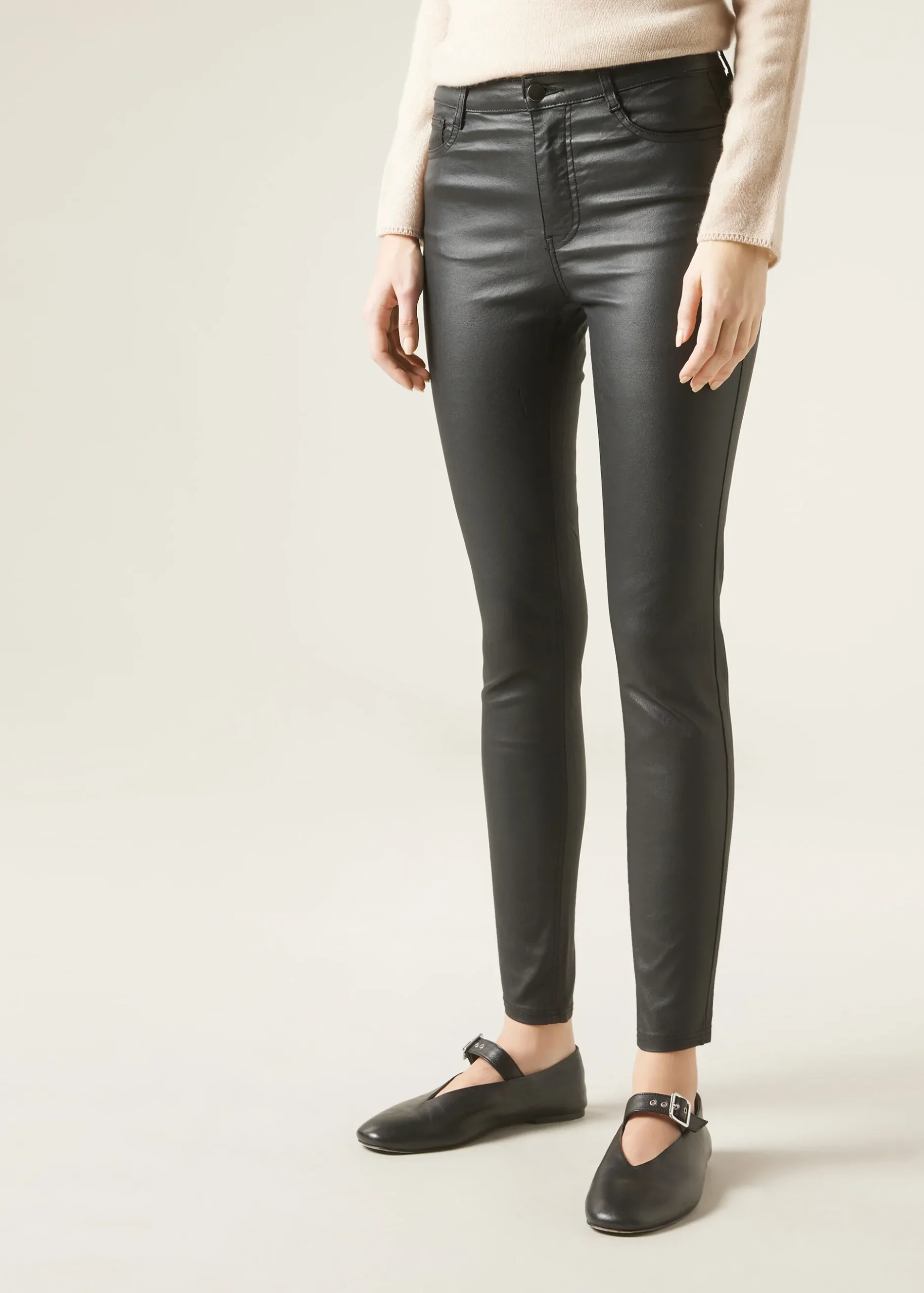 Leather Effect Leggings With A 5-Pocket Design, Including Real Front And Back Pockets. Zip With Button Fastening. Skinny Fit.