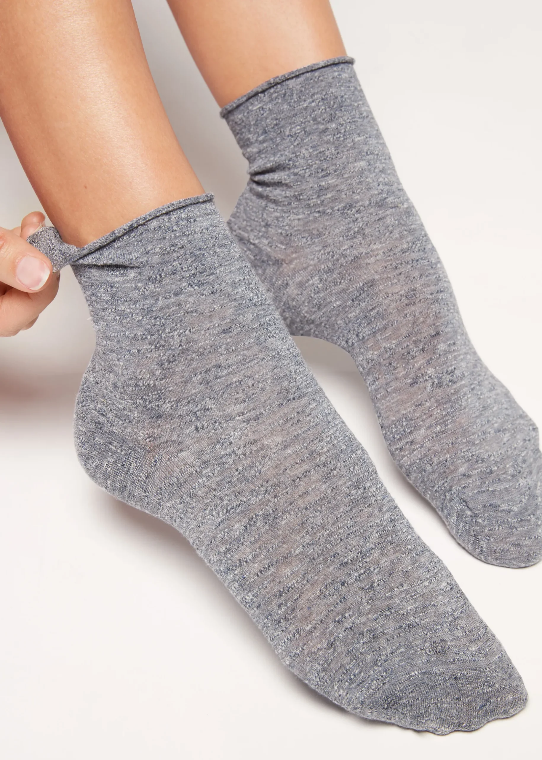 Women’s Short Socks Made From Linen And Viscose Featuring An Extremely Comfortable Soft Edge.