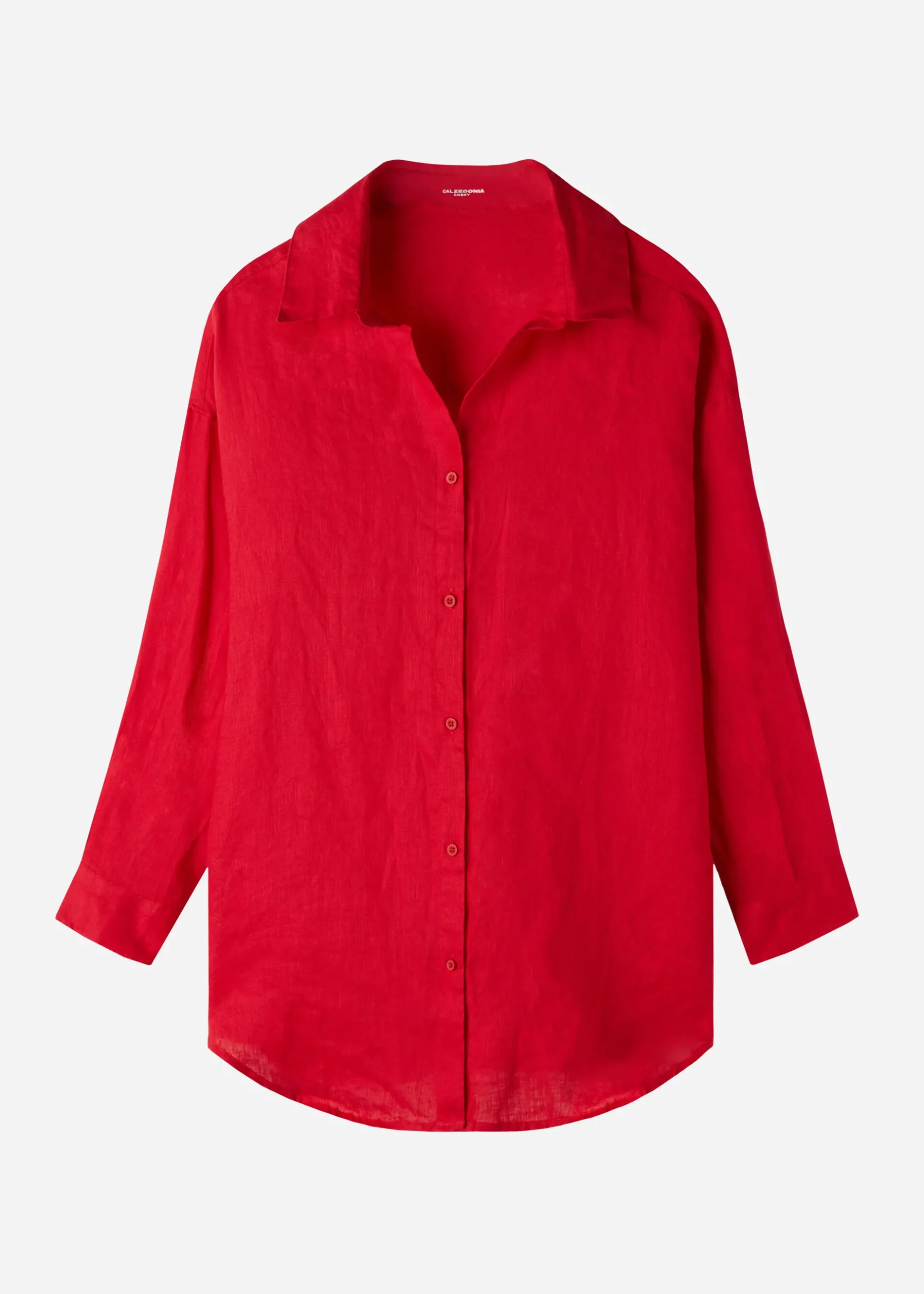 100% Linen Open Buttoned Shirt, Ideal For Those Who Love Natural Fibres. Shirt Collar And Long Sleeves. Above-The-Knee Length.