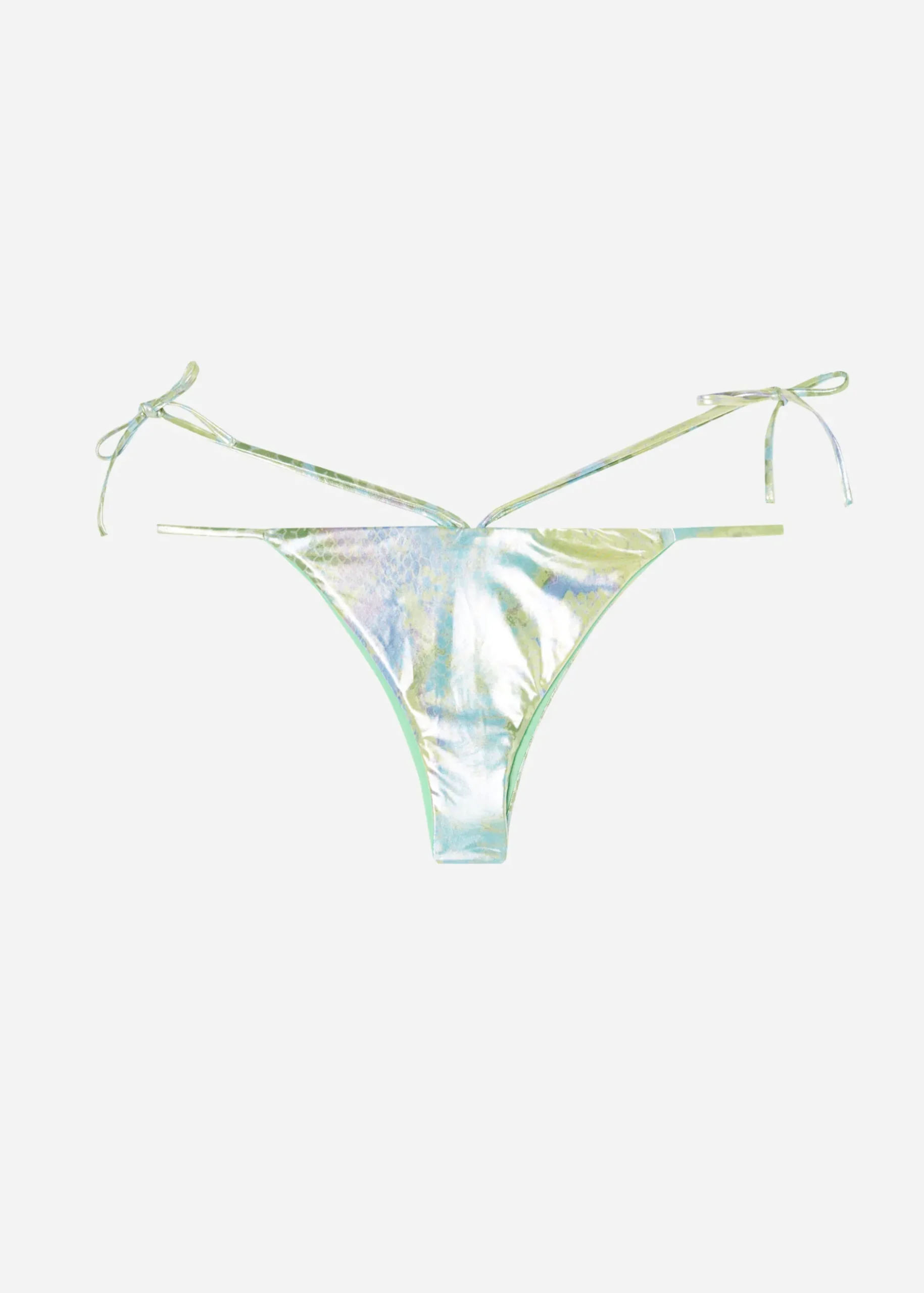 Brazilian Bikini Bottoms Featuring A Tie Pattern At The Hips And Waist. The Style Features Coated-Effect Fabric With A Snake Print In Soft Hues. Fully Lined And With Invisible Seams For A Smooth Shape.