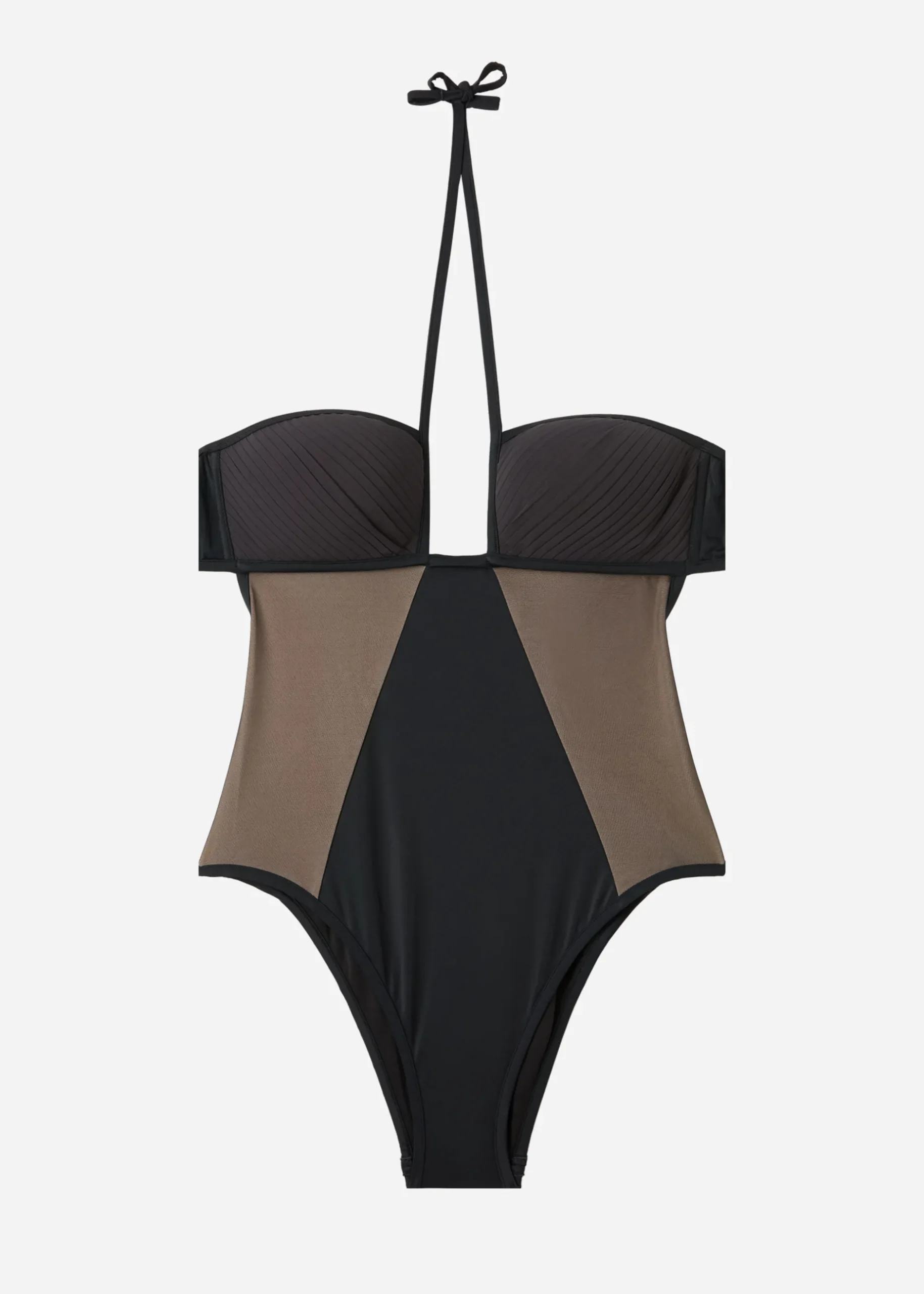 Low-Cut Swimsuit With Lightly Padded Cups And No Underwire. This Season’s Must-Have Style Can Be Worn With The Ties Crossed At The Cleavage Or Tied Around The Neck. The Style Features Tulle Inserts And Plisse-Effect Fabric. Thin Tie Fastenings At The Back. Fully Lined. High-Leg Fit.