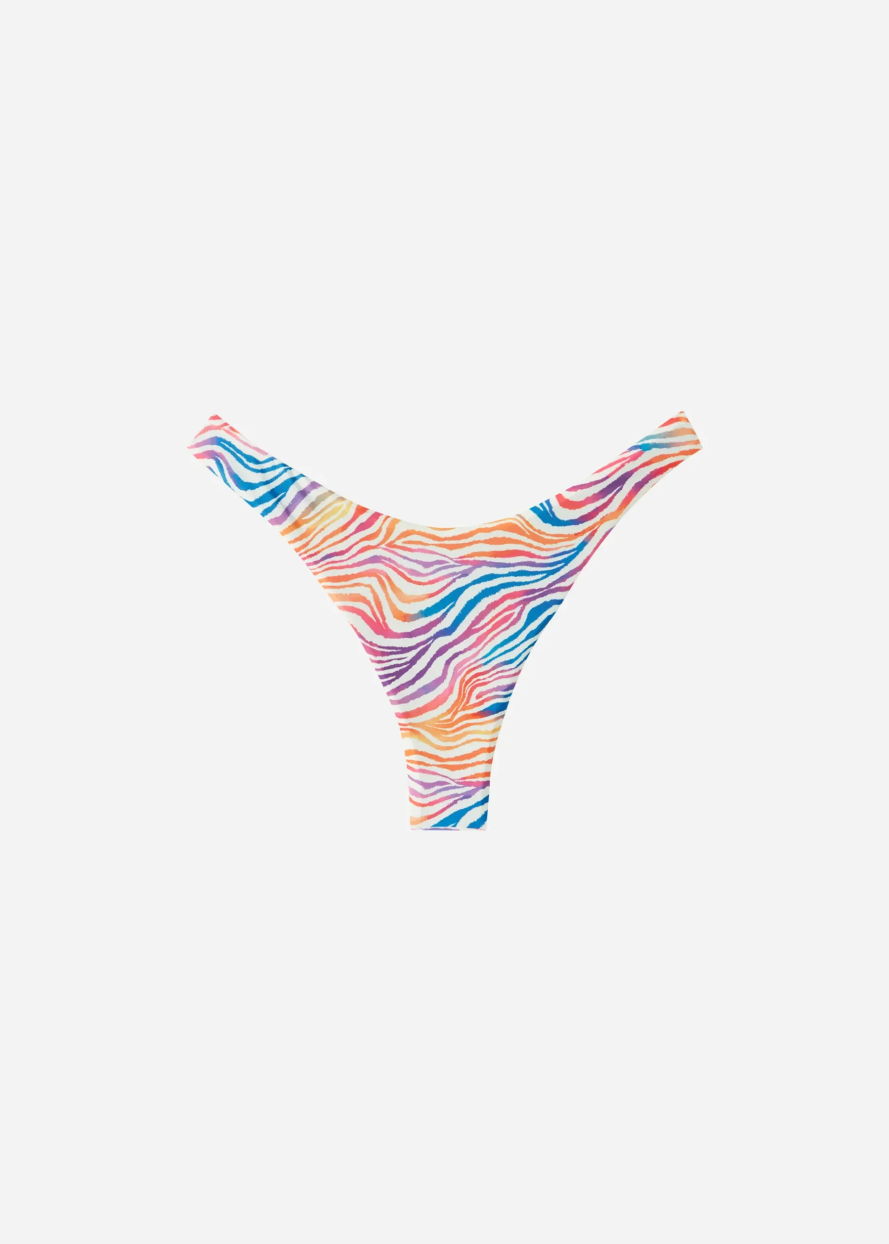 Double Face Brazilian Bikini Bottoms With V-Cut Front And Back, And 80S Style High Leg. The Style Features A Multi-Coloured Zebra Pattern. Fully Lined. Central Seam At The Back To Ensure A Better Fit.