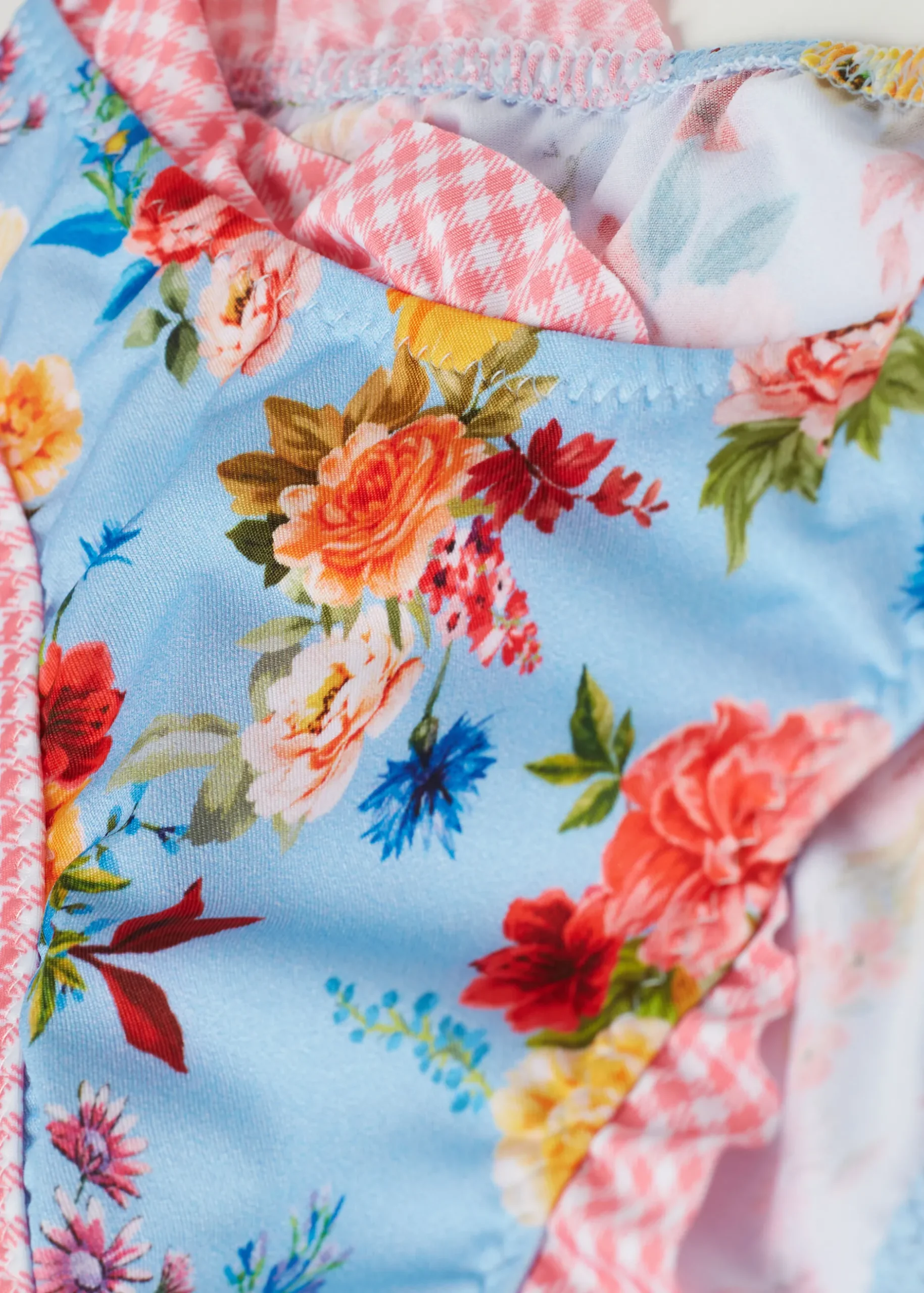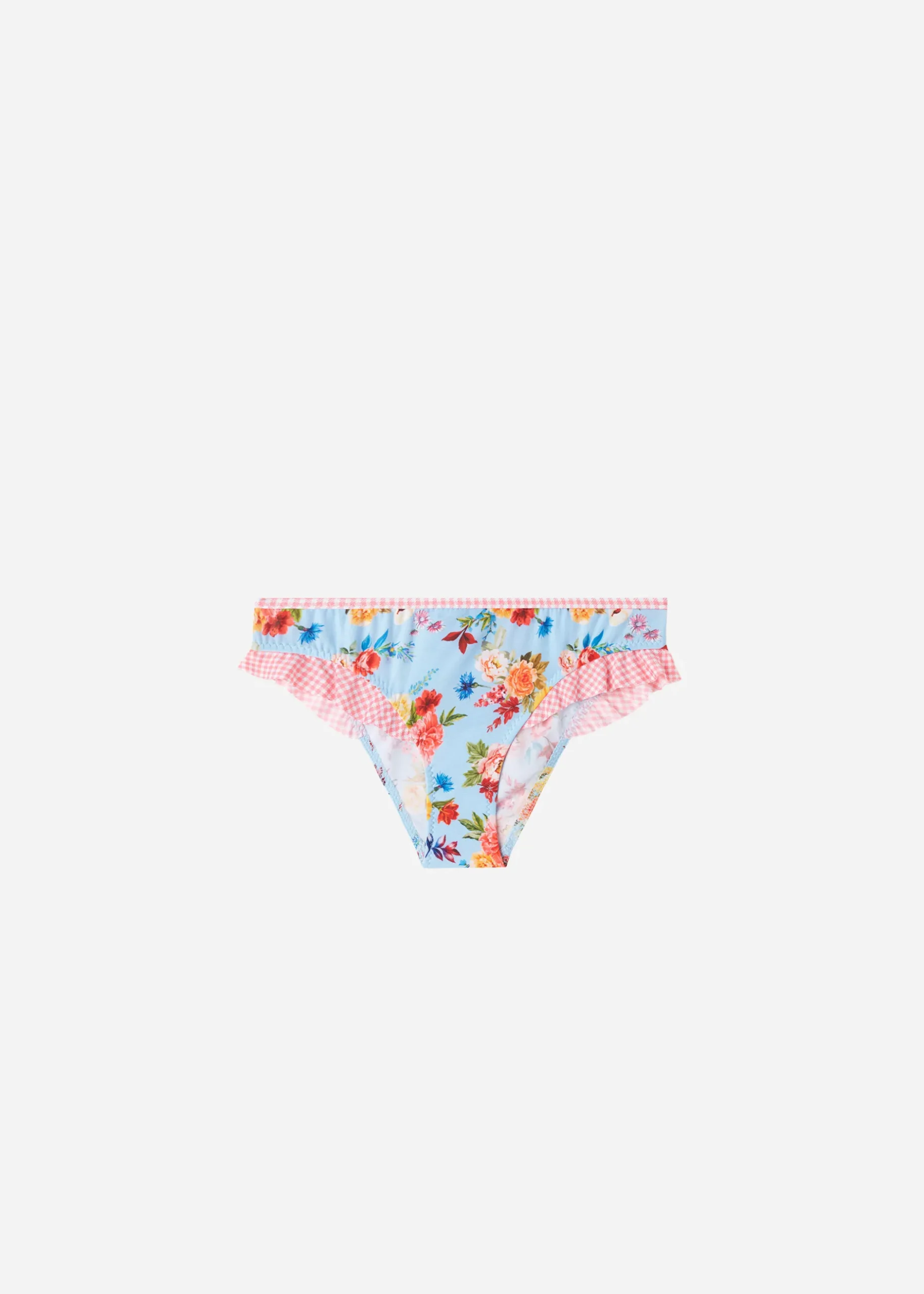 Girls’ Floral-Patterned Bikini Bottoms Embellished With Raw-Cut Gingham Ruffles. Lined Gusset.