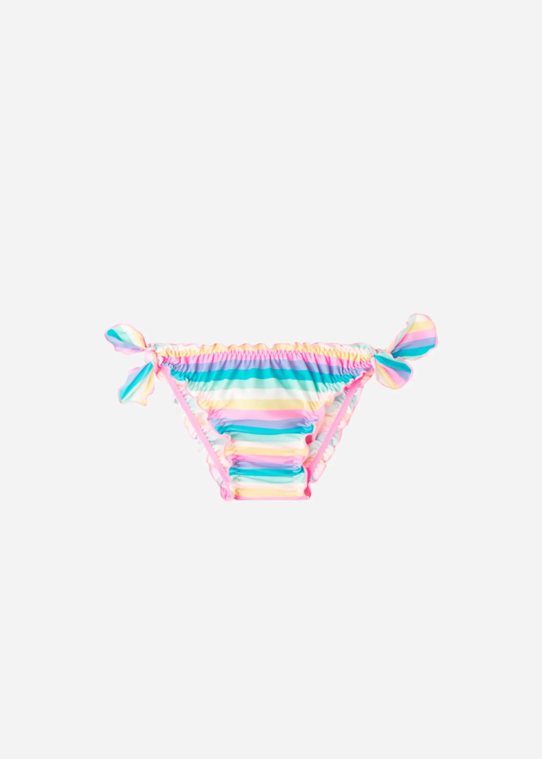 Girls’ Bikini Bottoms With Decorative Bows At The Hips, In Soft Microfibre Fabric With A Horizontal Stripe Pattern In Subtle Hues. Lined Gusset.