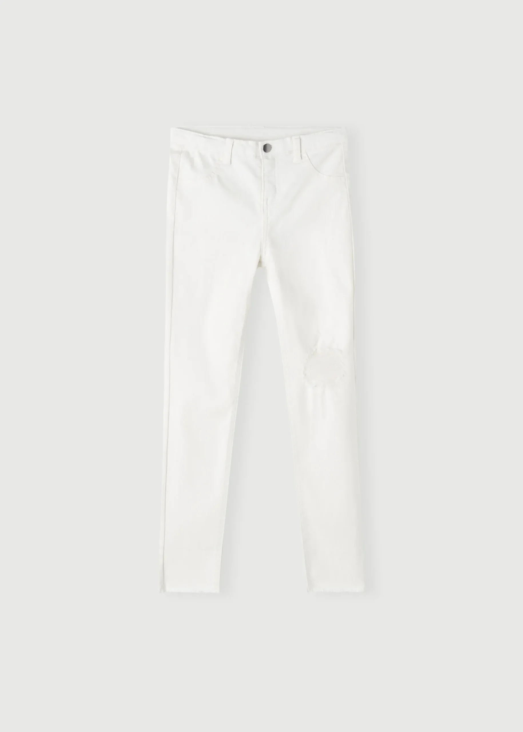 Girls’ Skinny Jeans With Rips At The Knees Reinforced With A Patch On The Inside. Super-Soft Stretch Denim Fabric. Zip With Button Fastening And Functional Adjustable Inner Elastic At The Waist. Faux Front Pockets And Real Back Pockets.