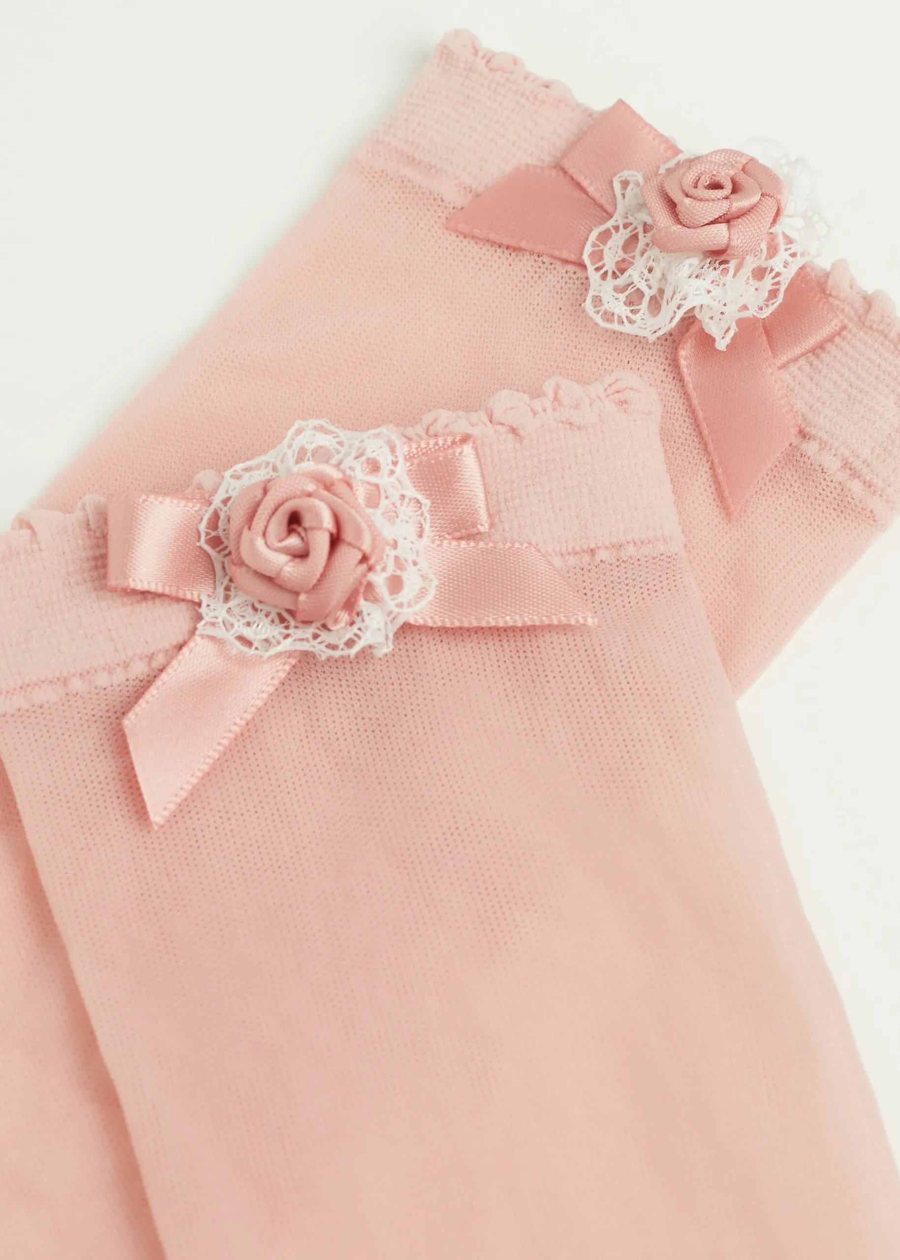 Girls’ 20 Denier Tulle Short Socks Embellished With A Bow And A Rose.