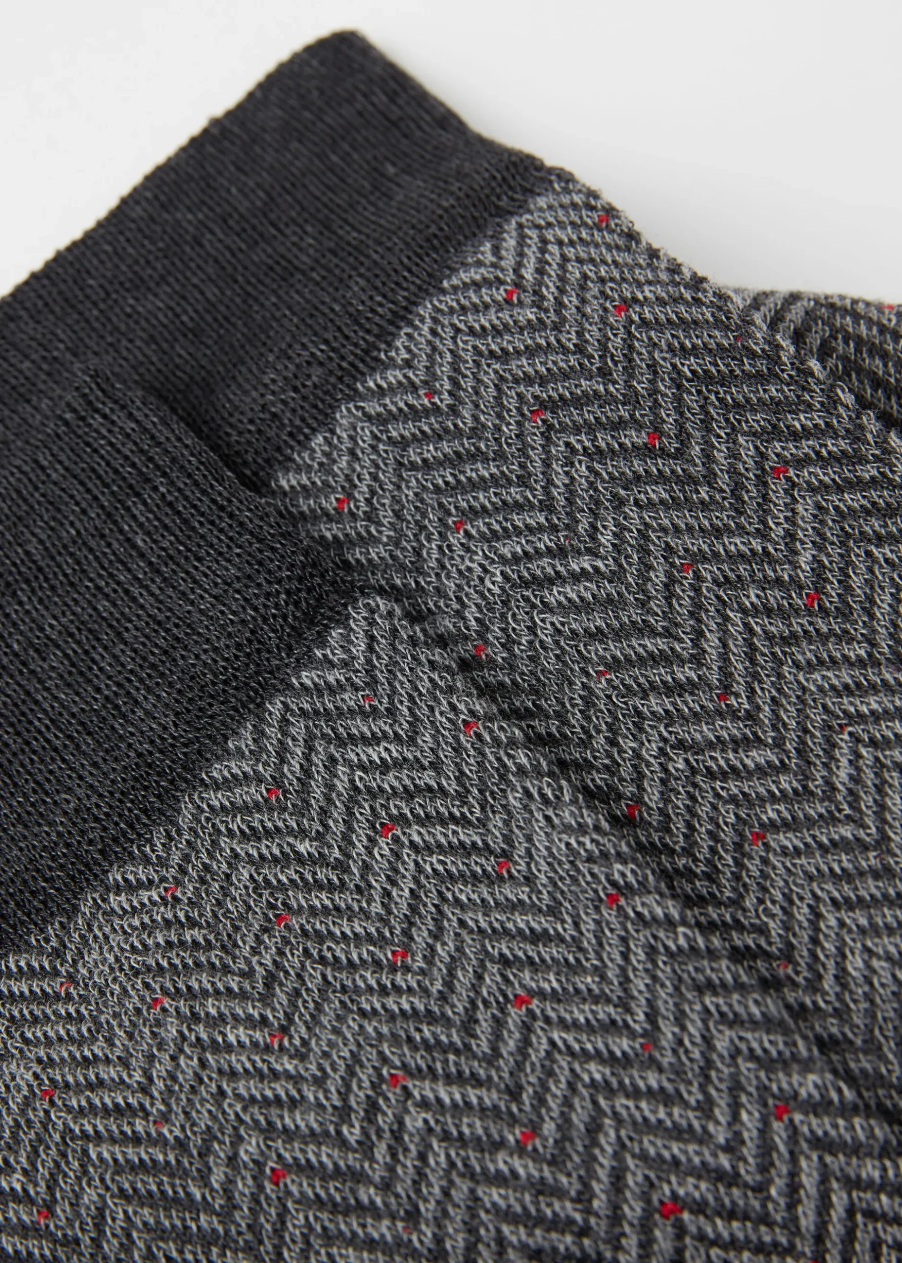 Men’s Crew Socks In Soft Cotton, Featuring A Herringbone Geometric Pattern And A Micro Dot In Contrasting Colour.