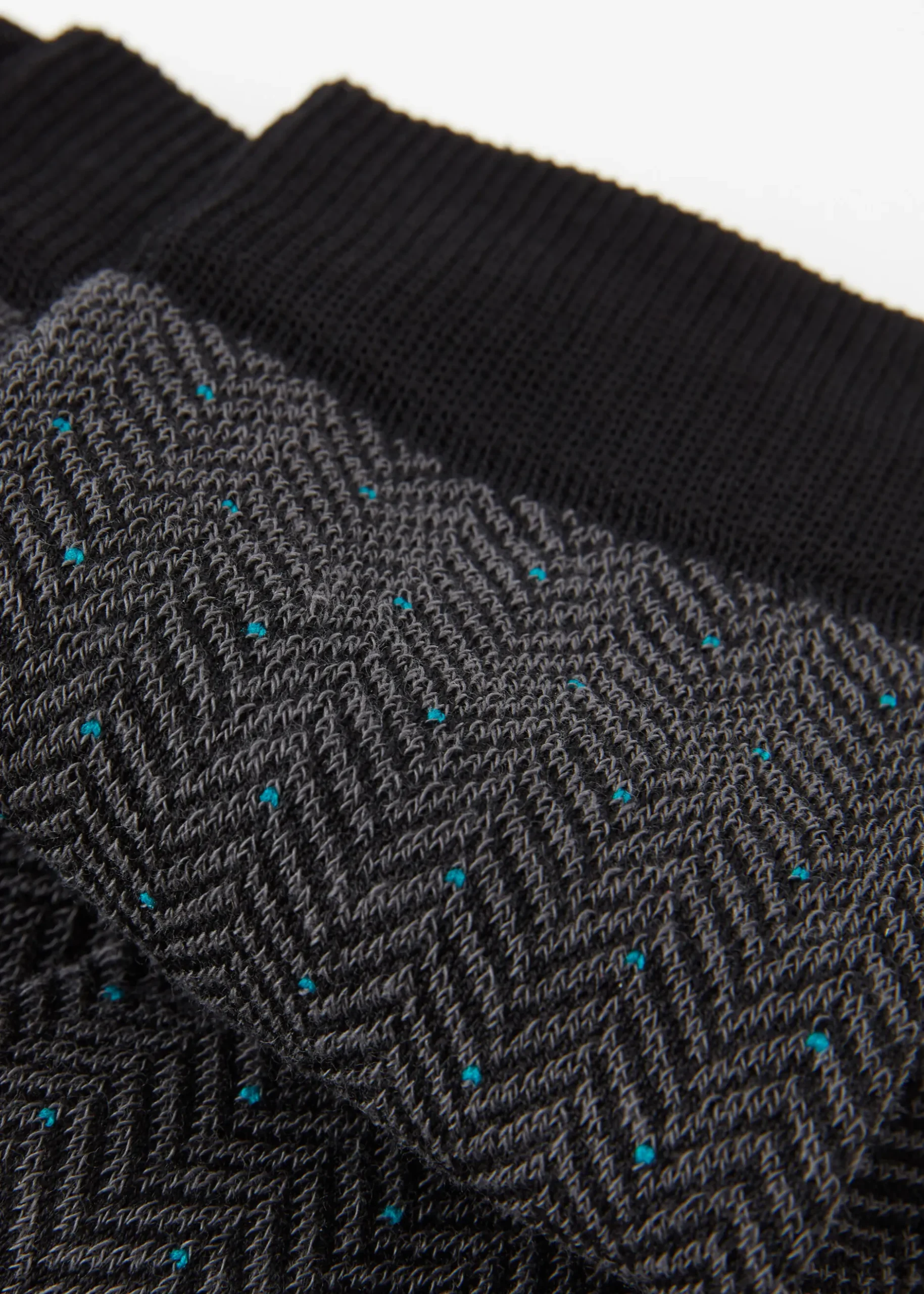 Men’s Crew Socks In Soft Cotton, Featuring A Herringbone Geometric Pattern And A Micro Dot In Contrasting Colour.