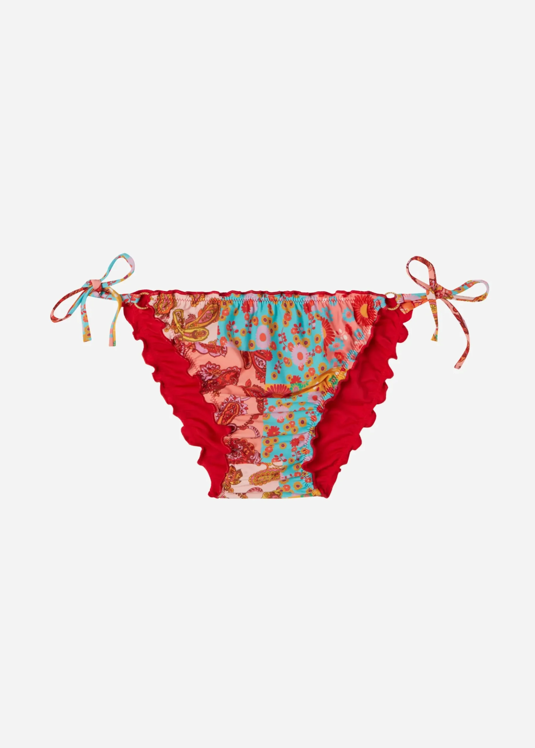 Bikini Bottoms With Bow Fastening At The Hips To Adjust The Fit. The Style Features A Patchwork Flower Pattern. Fully Lined With Invisible Seams.