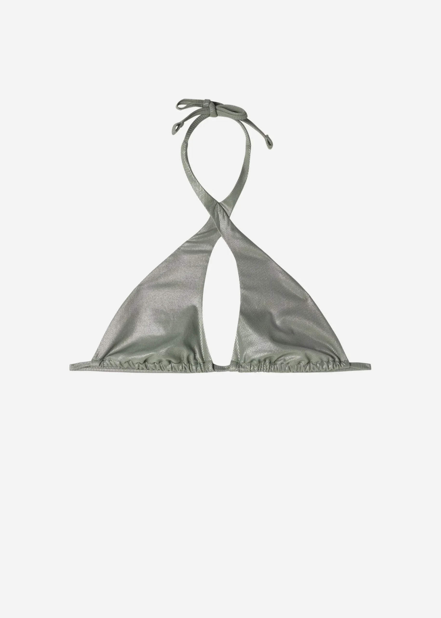 Bandeau Bikini Top Without Underwire. The Style Features Micro-Rib Fabric With An Elegant Coated Effect. The Shoulder Straps Have Eyelets On The Ends So They Can Be Hooked Onto The Back Band Or Tied Around The Neck. Thin Tie Fastening At The Back.