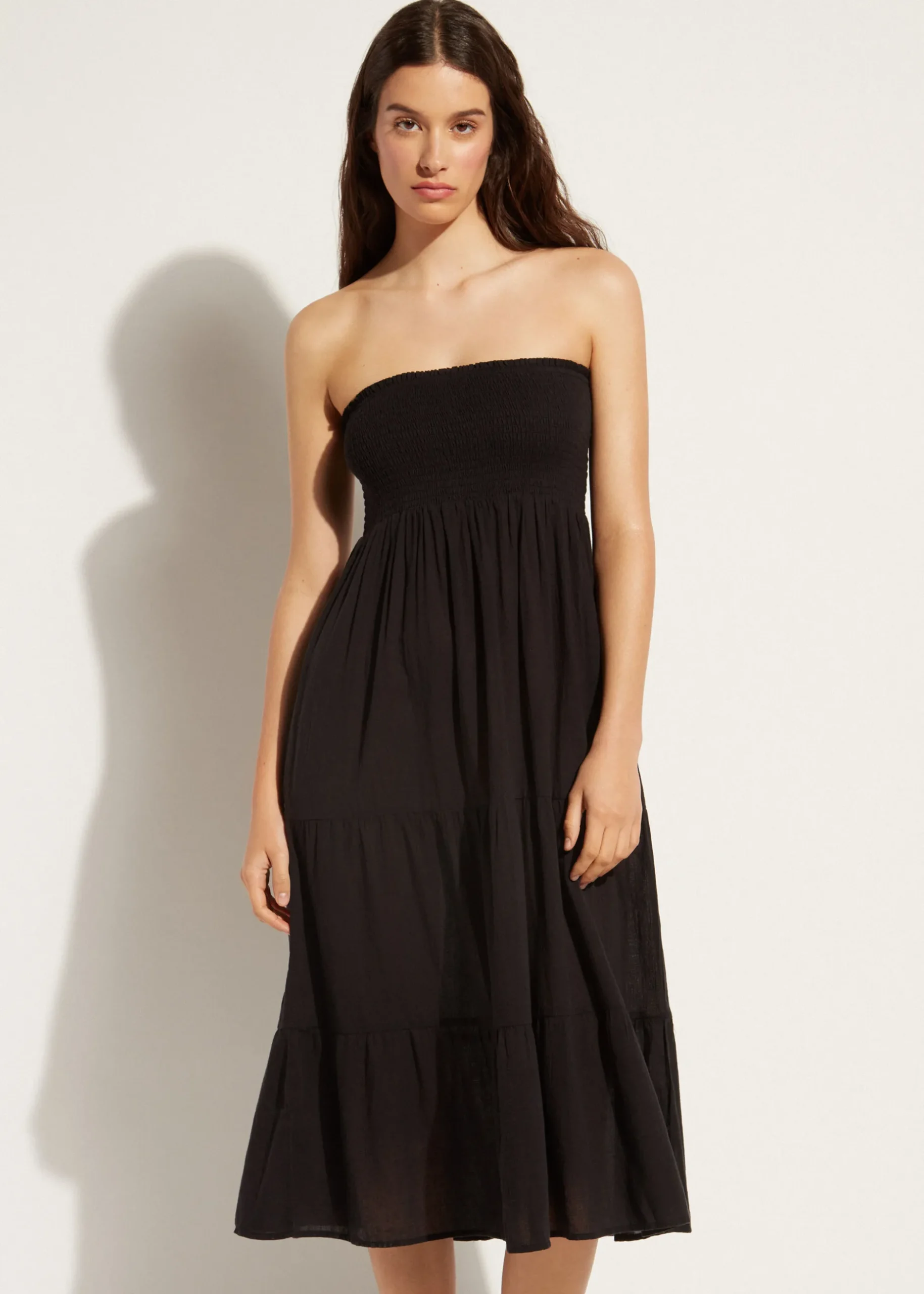 100% Light Cotton Midi Dress With Ruffles And Smocked Detailing On The Chest And Back. Practical And Multi-Functional, It Can Also Be Worn As A Long Skirt.