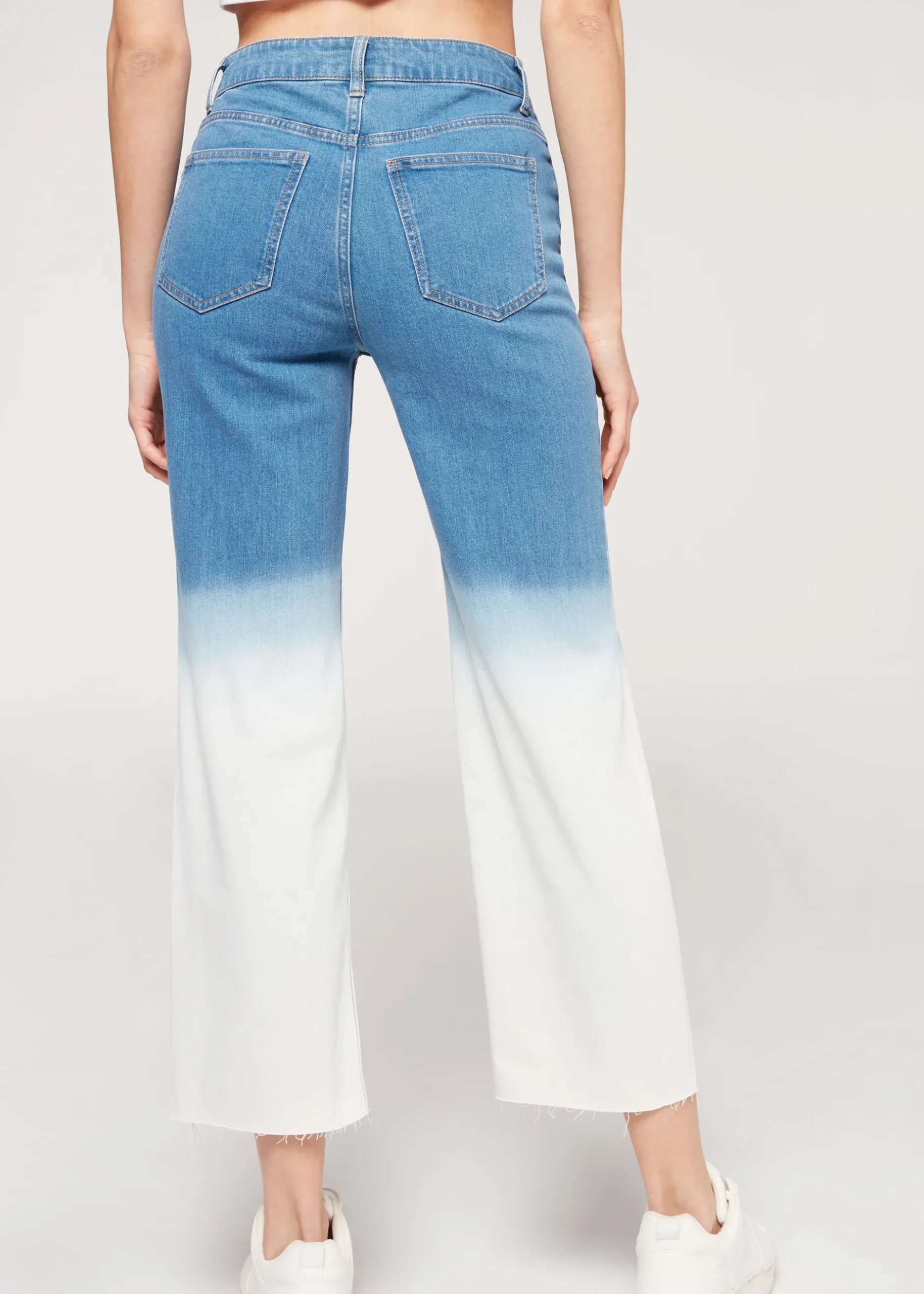 Women’s Faded Jeans With Comfortable Straight Fit, Ankle Length With Raw Cut At The Hem. Zip With Button Fastening, Front And Back Pockets.