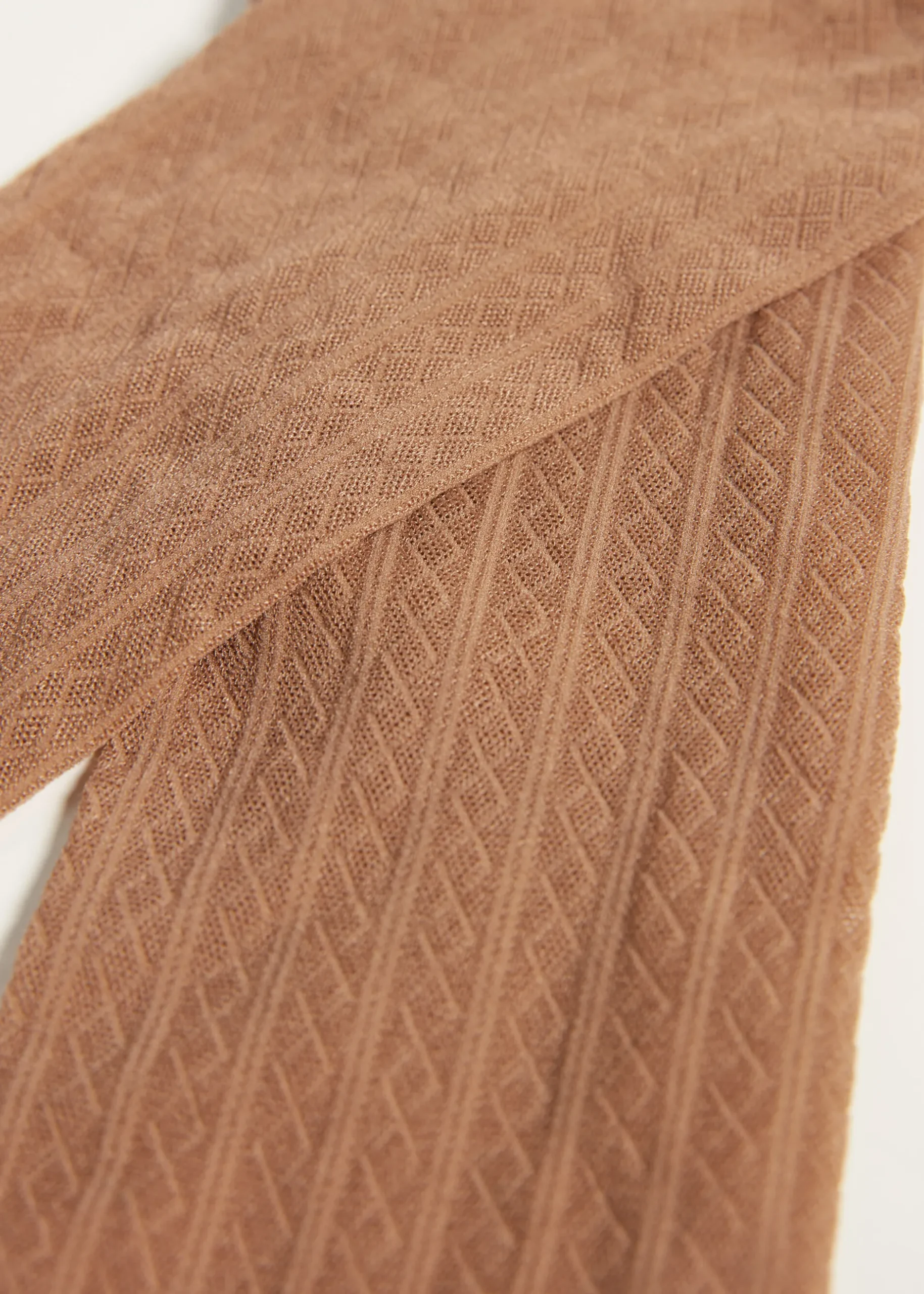 Women’s Vertical Diamond Patterned Knee-Highs Made With Eco-Sustainable Q-Nova Yarn, With A Soft, Straight Edge.