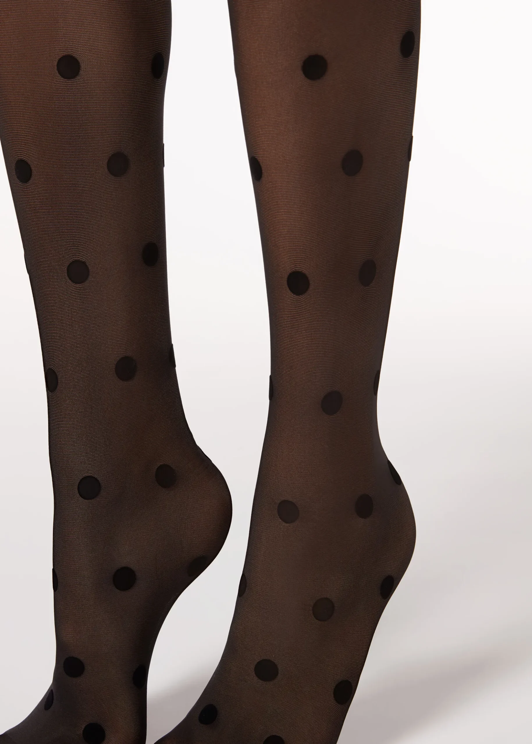 Women Calzedonia Flock Polka Dot 30 Denier Sheer Tights