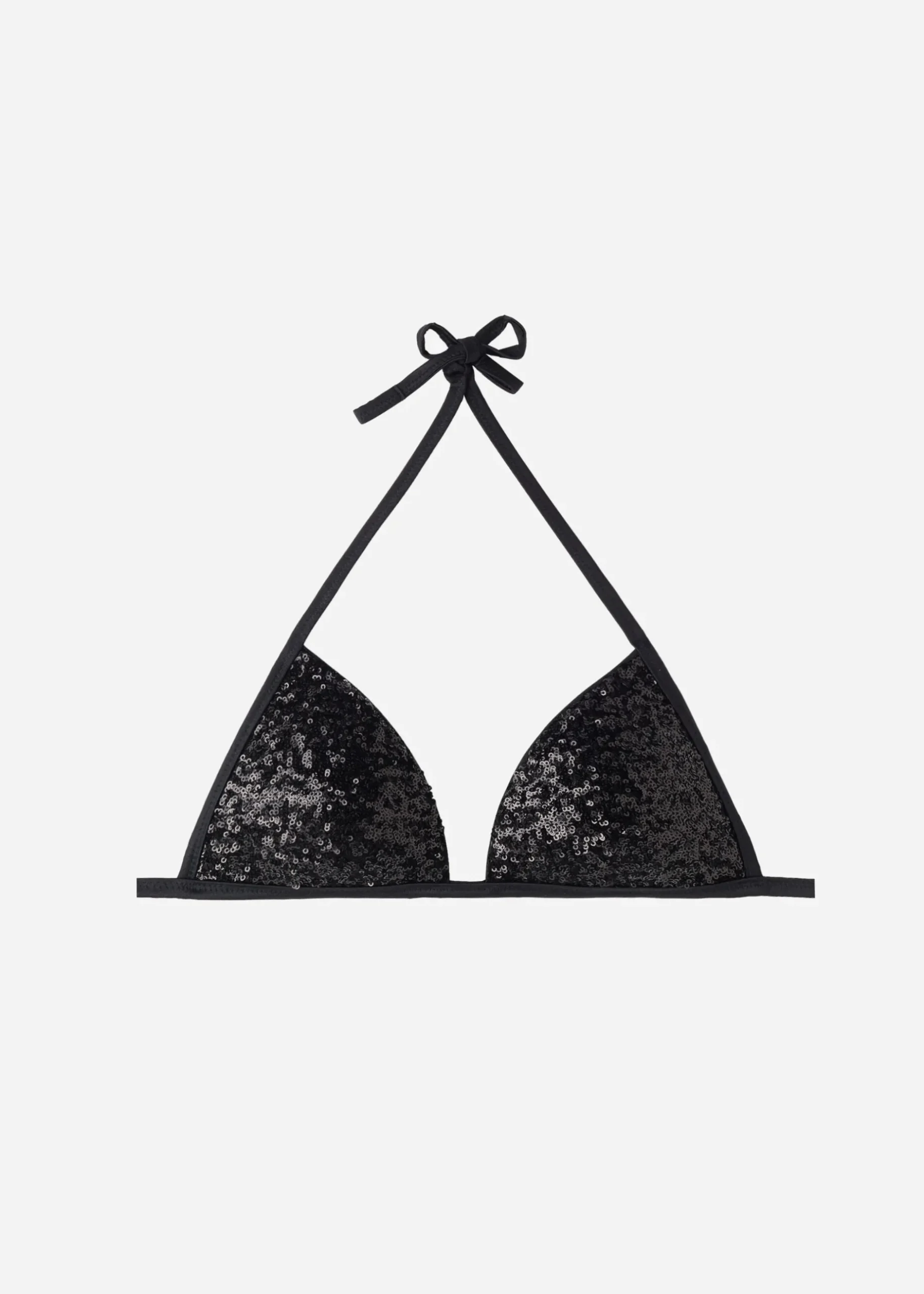 Non-Wired Fixed Triangle Bikini Top With Graduated Padded Cups That Add Volume To Enhance The Cleavage. The Shine Microfibre Fabric Is Embellished With Elegant Tone-On-Tone Sequins. The Shoulder Straps Have Eyelets On The Ends So They Can Be Hooked Onto The Back Band Or Tied Around The Neck. Thin Tie Fastening At The Back.