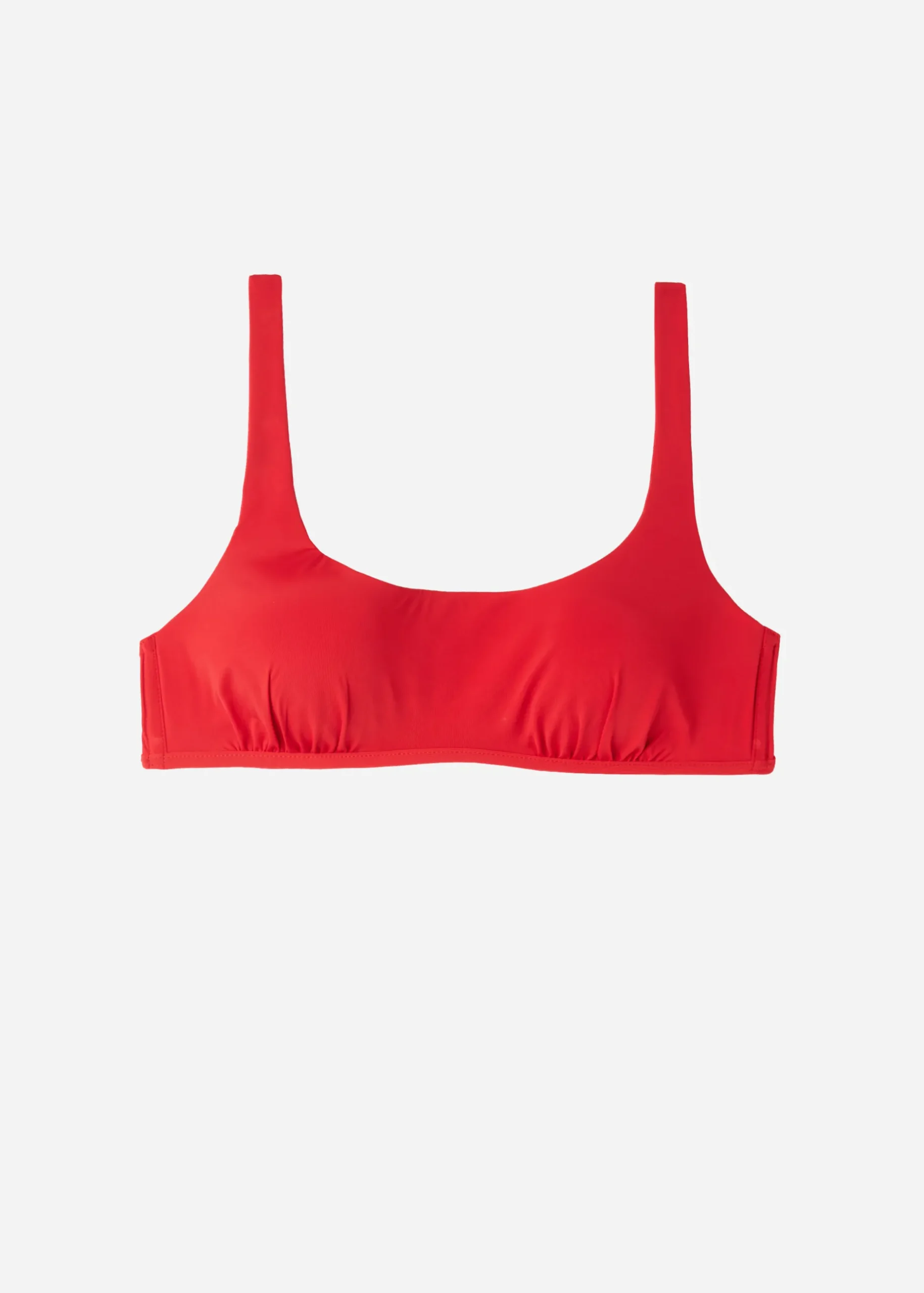 Lightly Padded Wireless Tank Style Bikini Top With Lacing At The Underbust. The Cut Of The Unique Cup Guarantees Good Support And Maximum Comfort. Quick-Drying Soft And Comfy Fabric, Made In Eco-Sustainable Fibers Sourced From Reclaimed Raw Materials For A Smaller Environmental Impact. Adjustable And Removable Straps May Be Crossed At The Back And Tied Behind The Neck. You Can Adjust The Point At Which The Shoulder Straps Hook Onto The Back As There Are Several Holes Along The Back Band. Back Hook Closure With Adjustment To Improve The Fit Of The Underband.